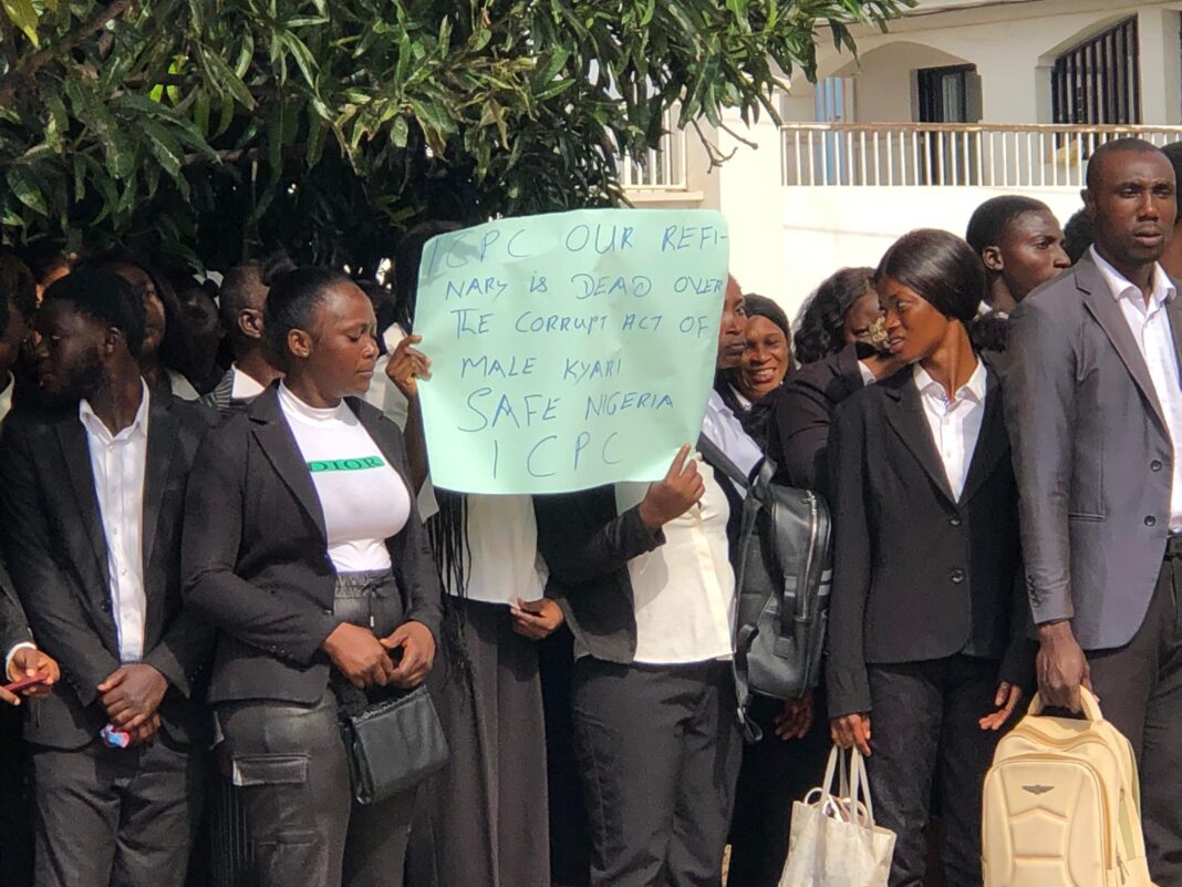 Hundreds of protesters, led by the Concerned Lawyers and Citizens Network (CLCN), stormed the headquarters of the Independent Corrupt Practices and Other Related Offences Commission (ICPC) in Abuja on Thursday demanding an immediate investigation into what they described as a massive $4 billion fraud involving the MSM Group and missing funds meant for Nigeria’s refinery rehabilitation.